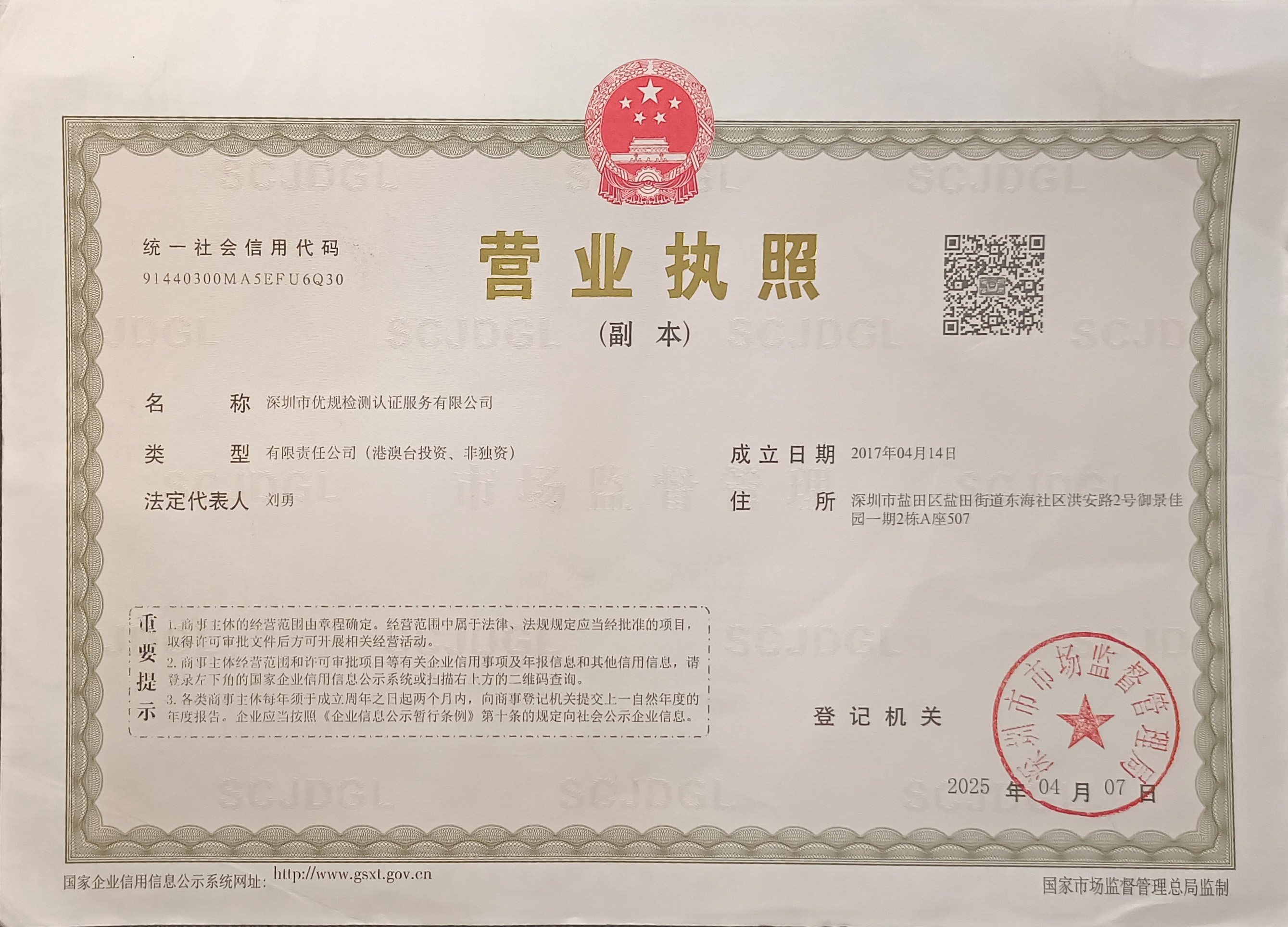 深圳市优规检测认证服务有限公司